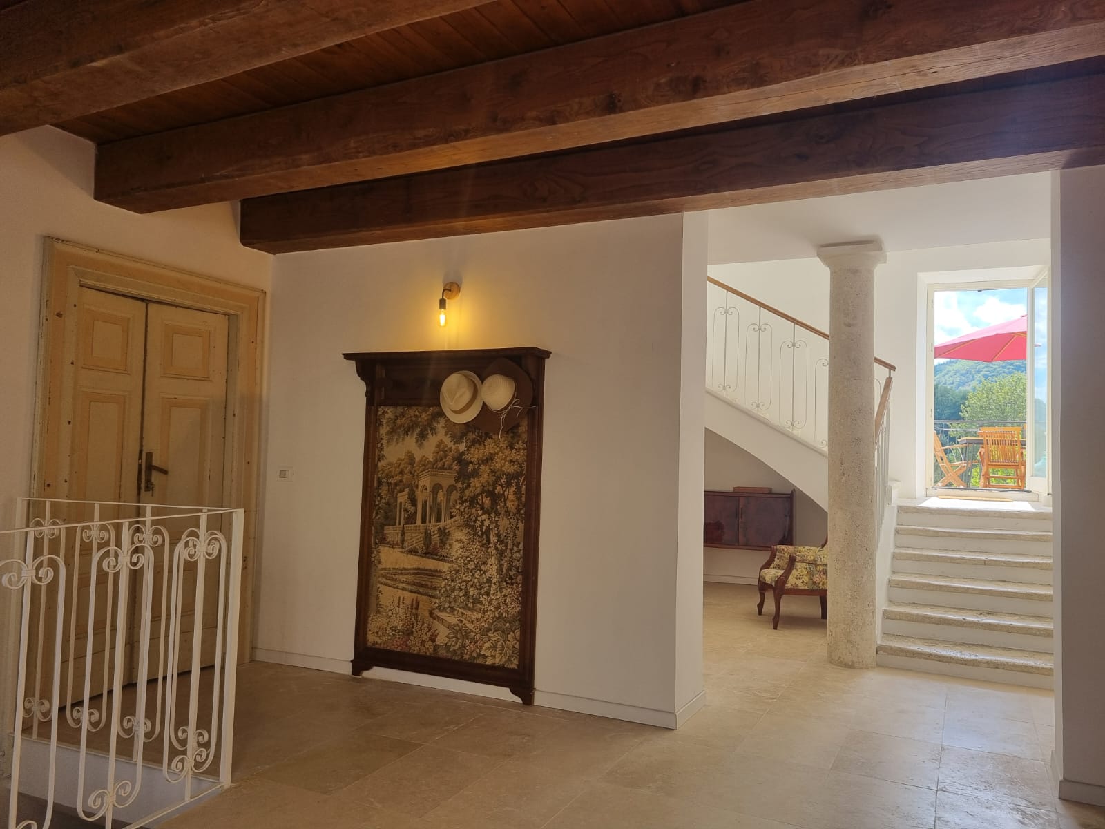 Toen we in het voorjaar van 2024 de Cammino Francescano delle Marche, van Ascoli naar Assisi stapten, passeerden we dit palazzo dat te koop stond. We werden opnieuw getroffen door de combinatie van oud en nieuw, van eenvoud en schoonheid.
